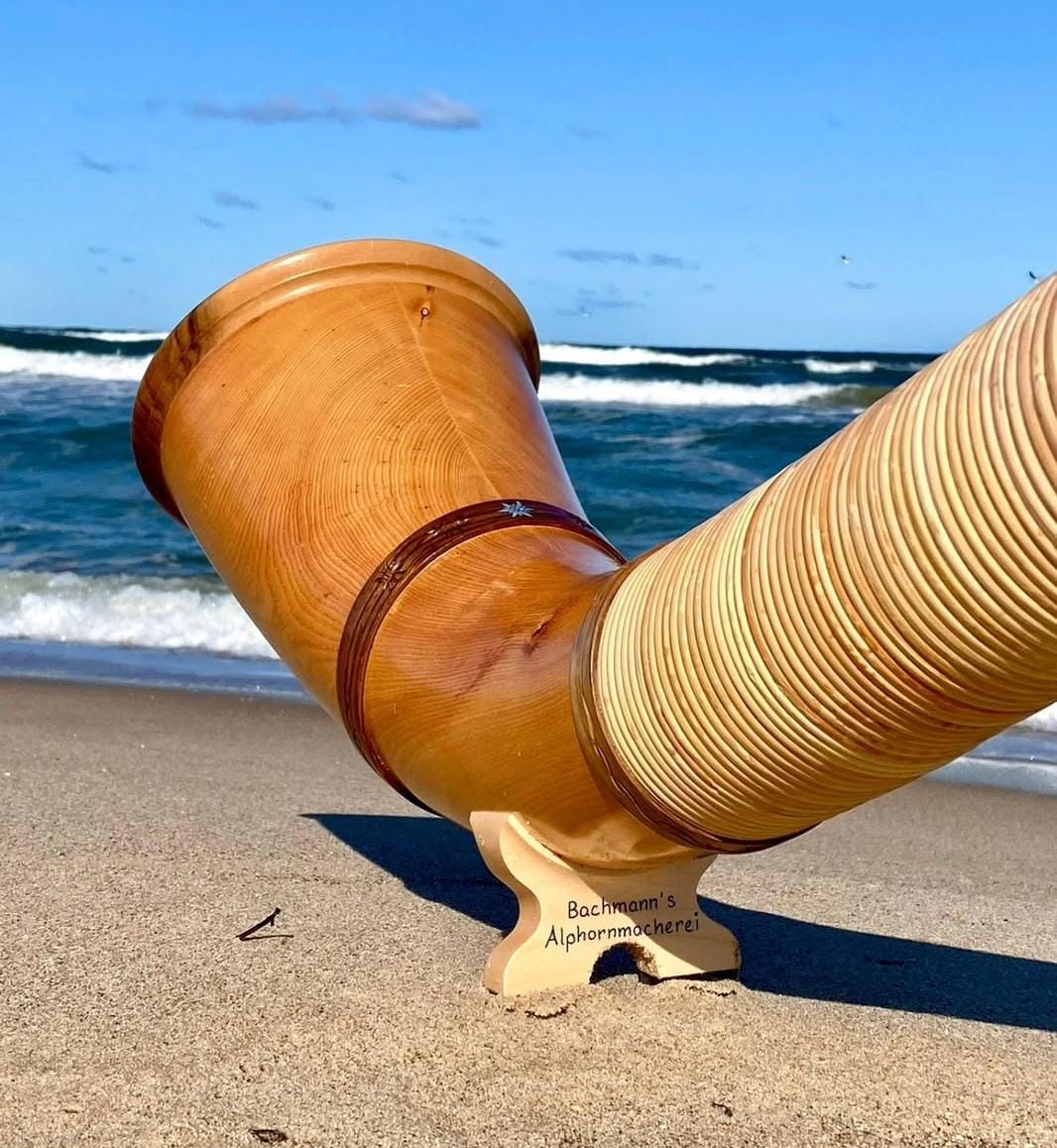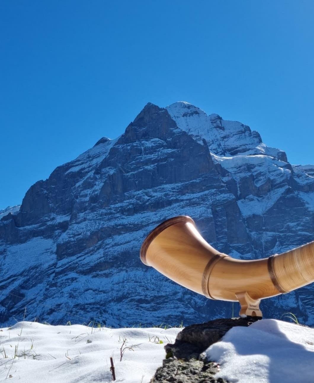 Die Einfachheit und Klangstärke sind diesem Alphorn auf den Becher geschrieben.